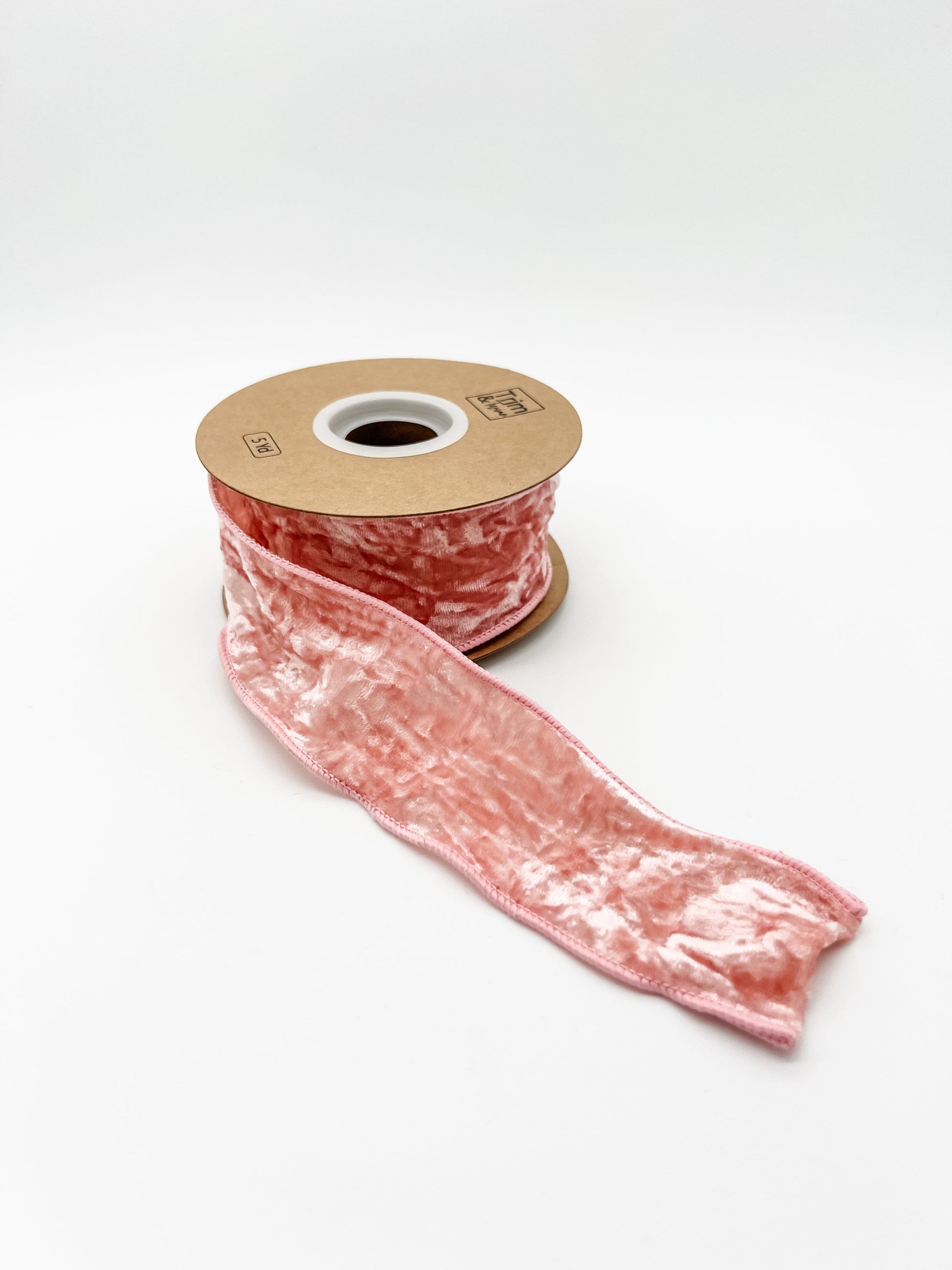 Elevate your holiday and everyday decorating with our luxurious 2" crushed velvet ribbon with wired edges. Crafted from the same premium velvet as our raw edge collection, this ribbon is specially designed with a crushed texture and built-in wire for effortless shaping, making it the perfect choice for Christmas tree decorating, wreaths, garlands, tabletop accents, floral arrangements, bows, and gift wrapping.
