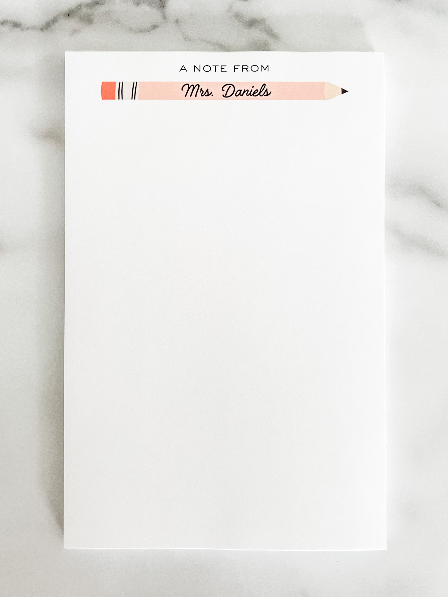 Personalized Custom Teacher Notepad - Pencil Design - No Lines