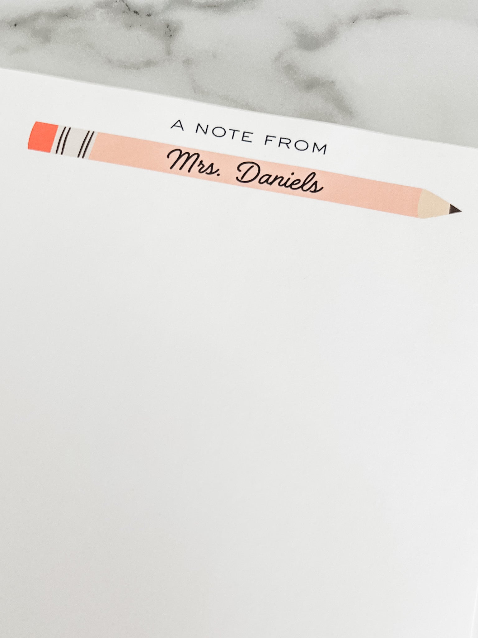 This custom teacher notepad makes the perfect teacher appreciation gift, end-of-year gift, or back-to-school gift. It’s a thoughtful piece of personalized stationery that every teacher will love to keep on their desk.