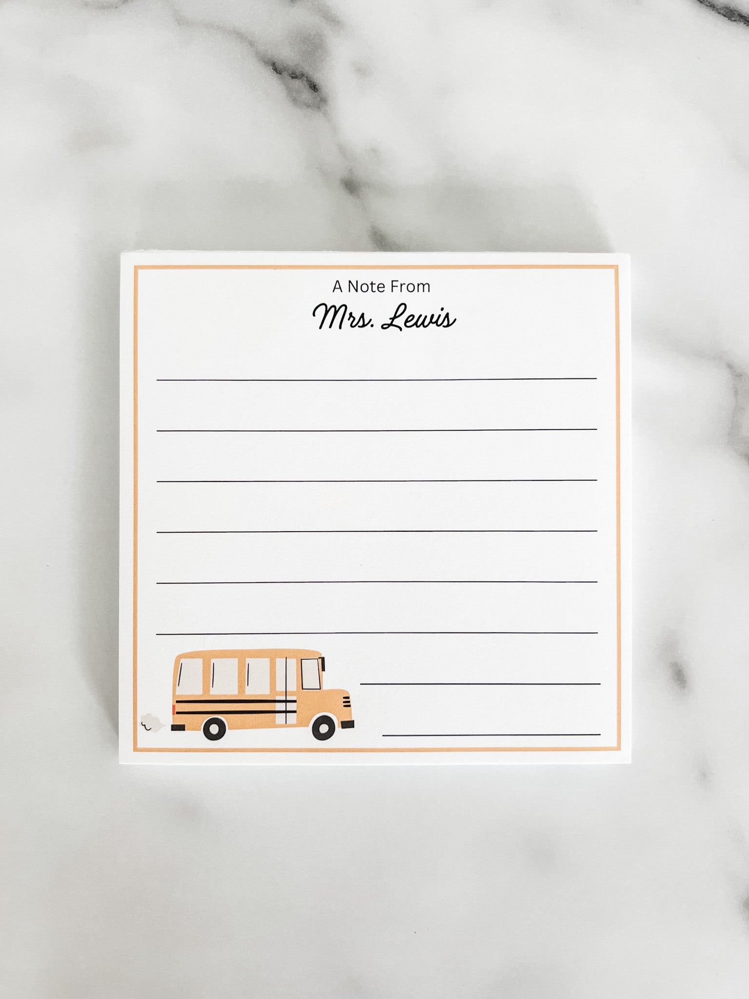 Personalized Custom Teacher Notepad - School Bus w/ Lines